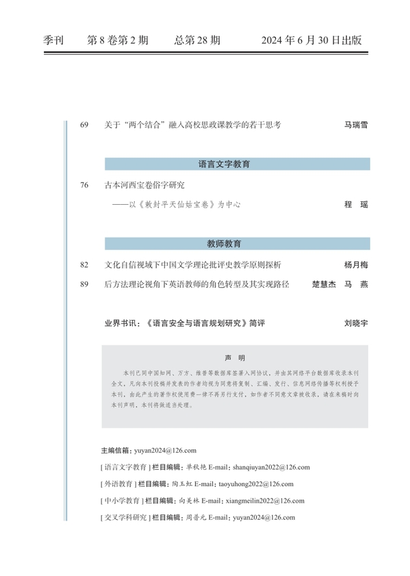 《语言与教育研究》2024年第2期