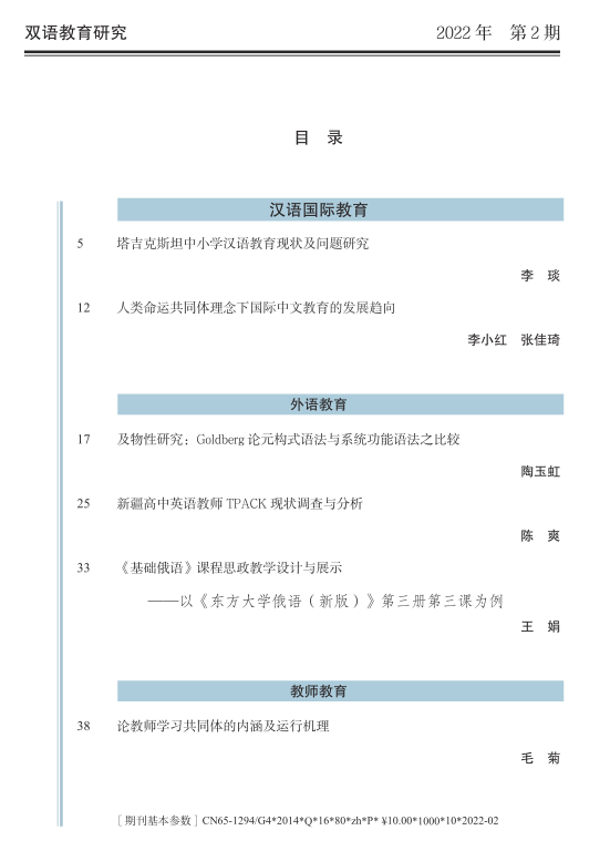 《双语教育研究》2022年第2期