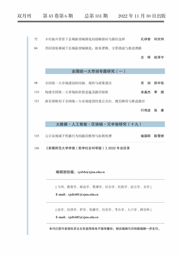 新疆师范大学学报(哲学社会科学版)2022年第6期