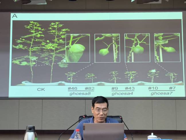 报告会在我校温泉校区行政楼220会议室举行,朱玉贤作题为《棉花后基因组学研究新进展》的专题报告,从亚洲棉极高通量转录组测序,棉花ITG基因特征分析,棉花ITG基因发生机制,棉纤维中CESA的功能单位,CESA4,7或8单基因敲除导致纤维次生壁发育受阻,棉纤维中三十六聚体CSC产生72链微纤丝等六个方面介绍了亚洲棉花基因组特点及棉纤维发育功能基因调控机理。报告会由赵惠新主持,生命科学学院师生聆听报告并就研究中的学术疑惑与朱玉贤进行面对面深入交流。