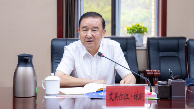 8月14日下午,阿克苏地委委员、统战部部长艾买尔江·依明一行五人前来我校与政法学院、新疆宗教研究中心交流洽谈合作事项。校党委副书记刘俊陪同参观国家民委新疆师范大学中华民族共同体研究基地、新疆宗教研究中心并主持双方交流洽谈会。