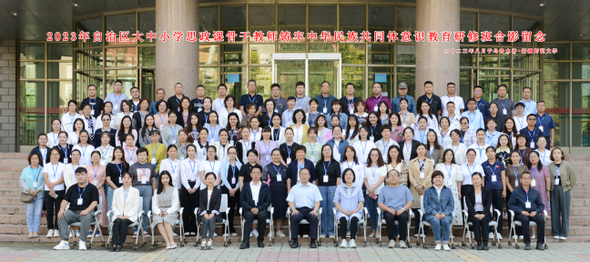 为深入学习贯彻习近平新时代中国特色社会主义思想,贯彻落实习近平总书记关于教育的重要论述特别是学校思想政治教育工作的重要论述,完整准确贯彻落实新时代党的治疆方略,紧紧围绕铸牢中华民族共同体意识这条主线,切实发挥好思政课在教育引导学生铸牢中华民族共同体意识中的基础性、根本性、关键性作用,突出思政课的思想性、理论性和亲和力、针对性,推动大中小思政教育一体化建设走深走实,8月16日上午,由自治区党委教育工委、自治区教育厅主办,全国高校思想政治理论课教师研修基地(新疆师范大学)和新疆高校思想政治理论课改革创新研究中心(新疆师范大学)承办的2023年自治区大中小学思政课骨干教师铸牢中华民族共同体意识教育研修班在我校开班,来自全疆大中小学思政课骨干教师120余人参加了本次研修。自治区党委教育工委副书记胡军海、教育工委思政处副处长陈金花、教育厅思政处处长张登伟、新疆师范大学党委副书记刘俊出席开班仪式,开班仪式由我校马克思主义学院党委书记张峥主持。