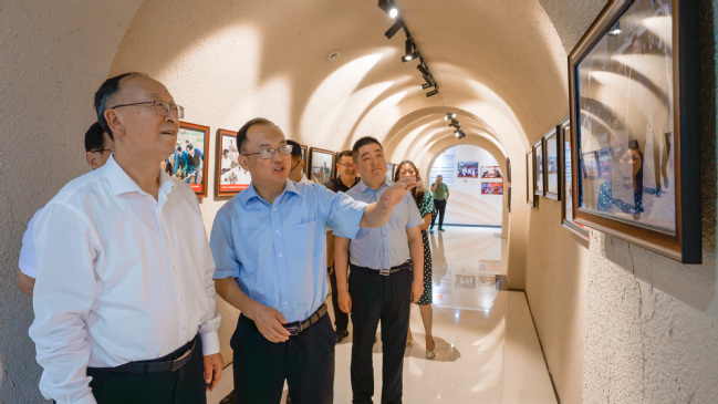 会前,焦盛荣一行参观了我校新时代文明实践党史学习教育基地暨马克思主义理论教育基地。