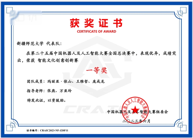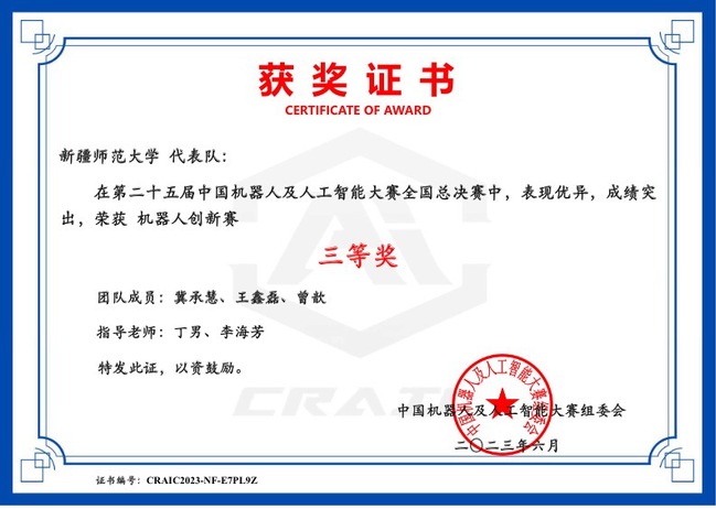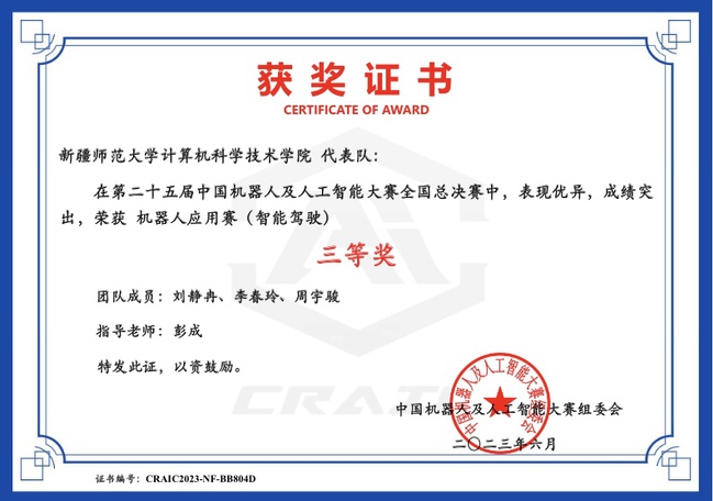 获奖选手中,教育科学学院玛丽亚·依山、王雅哲、庞成龙三人小组荣获“智能文化创意创新赛(CRAIC20237MZIABMT)”一等奖;计算机科学技术学院冀承慧、王鑫磊、曾歆荣三人小组荣获“机器人创新赛(CRAIC2023SC1LKIDW)”三等奖;计算机科学技术学院刘静冉、李春玲、周宇骏三人小组荣获“智能驾驶(CRAIC2023TLHFRC1L)”三等奖。我校获评自治区优秀组织奖,6名教师获评自治区优秀指导教师,1名教师获评自治区优秀组织个人奖。