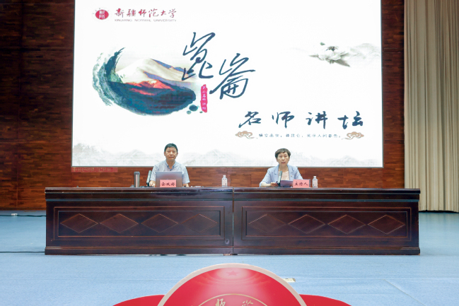 讲座开始前,孙秀玲代表学校向佘双好教授颁发新疆师范大学客座教授聘书。