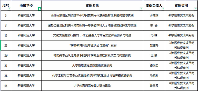 近日,自治区教育厅发布了《关于2017—2020立项教改项目结题验收及教改项目典型案例结果的公示》,我校共有4项综合教改项目、11项普通教改项目顺利结项,报送的8个典型案例全部入选,数量位居全疆高校首位。其中,于祥成《西部民族地区高校铸牢中华民族共同体意识教育体系的构建与实践》等3个案例入选自治区级教学成果奖成果案例,赵建梅《“学前教育师范专业认证与建设”案例》等5个项目入选自治区级教改项目优秀结项案例。