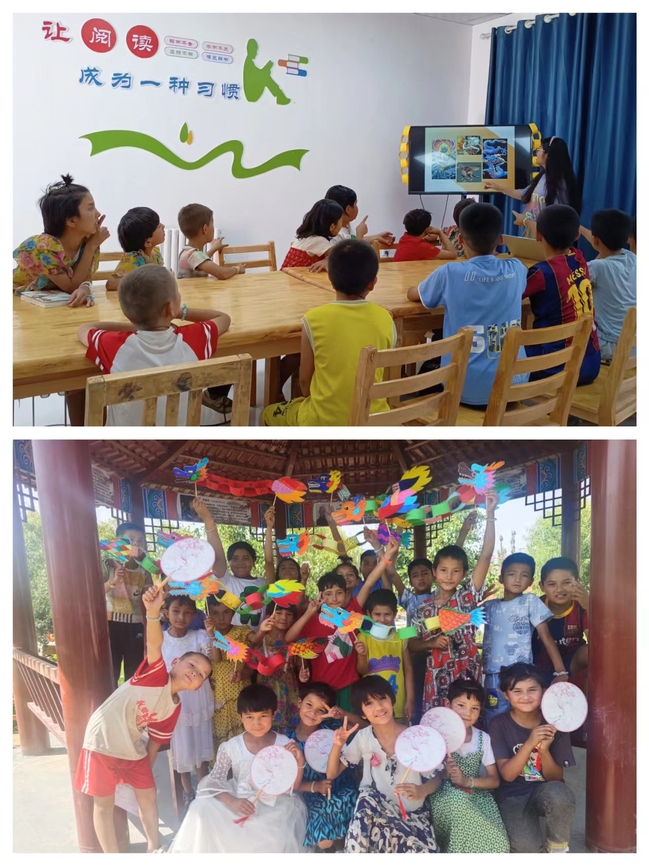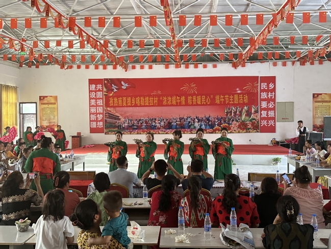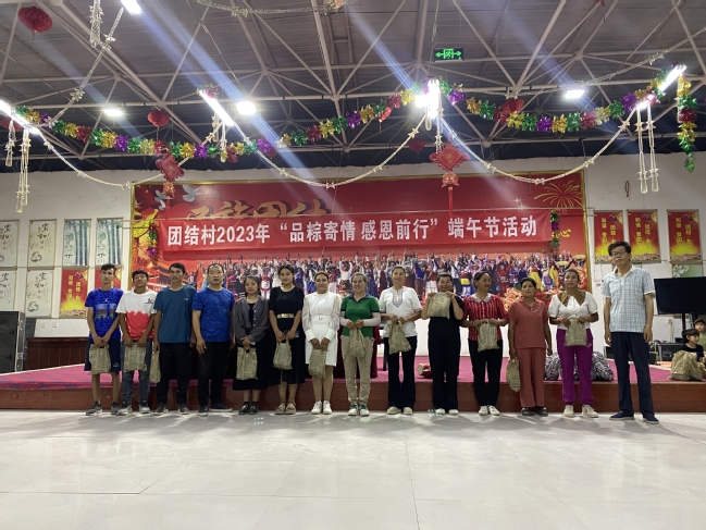 粽叶香,中华情。工作队充分挖掘端午节的文化内涵,组织各类文化活动,促进村民对传统节日的了解和认同,激发村民爱党、爱国、爱家乡,共圆中国梦的热情。我校驻孜热甫夏提塔吉克民族乡喀勒提拉村驻村工作队开展了“浓浓端午情 粽香暖民心”端午节主题活动,组织农民演出队编排了中华传统歌舞、中华戏曲、中华传统服饰走秀等形式多样的文艺节目,演出现场传来阵阵喝彩声,气氛十分热烈。活动期间,工作队还向村民发放粽子,让村民在品尝中华传统美食之时感受到了中华传统节日的魅力。我校驻莎车县亚喀艾日克乡阔什吐格曼村驻村工作队利用“美育小课堂”组织开展了“端午节——中华传统节日文化赏析”主题活动。工作队员与实习支教学生为小朋友们介绍了“端午节”的来源与习俗,并带领小朋友共同完成了“中国龙”“五彩绳”的制作,加强了农村青少年对中华民族传统文化的认同。随后,工作队还与村民共同联谊,向村民讲述了我国伟大文学家、爱国诗人屈原的故事,让村民在故事中追思爱国情怀,在节日中追溯家国情深。