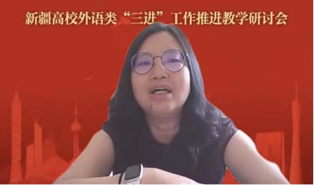 在院校交流环节,新疆师范大学外国语学院教师索菲娅·范、燕姣,石河子大学外国语学院教师阿伊努尔,喀什大学外国语学院党委书记陈国静、教师舒进艳,新疆第二医学院语言文化部主任叶婧、教师崔倩倩分别展示了本校基于“理解当代中国”系列教材进行教学实践、创新教学改革的优秀成果,展现了各高校在推进落实“三进”工作、深化课程思政建设、创新人才培养方面所作的不懈努力。