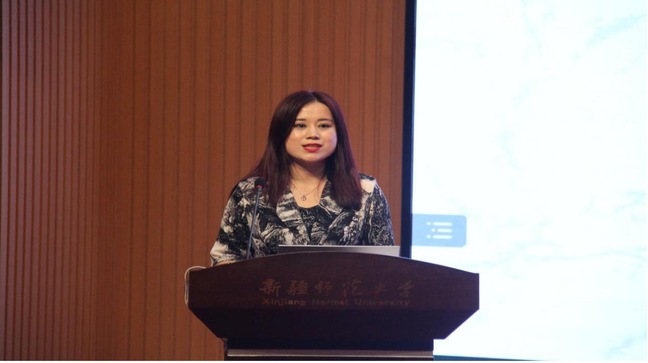 新疆师范大学外国语学院团队代表燕姣做“理解当代中国”系列《日语演讲》课程汇报