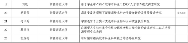 近日,根据自治区教育厅公布的《关于对2023年度自治区高校本科教育教学研究和改革项目拟立项名单的公示》,我校共有24个项目获准立项,立项总数位居全疆高校第三名,较2022年增加14项,同比增长近60%。其中,综合教改项目9项(含1项委托项目),立项数目位居高校第一名,普通教改项目15项,立项数目位居高校第三名。
