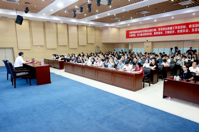 为深入推进学习贯彻习近平新时代中国特色社会主义思想主题教育,6月9日上午,我校“昆仑名师讲坛”第一百四十八讲暨学习贯彻习近平新时代中国特色社会主义思想主题教育集中学习在昆仑校区国际教育大厦一楼报告厅举办。本次讲坛特邀中国科学院地理科学与资源研究所方创琳研究员作主题讲座。校党委常委、副校长帕提曼·吐尔逊出席并主持讲座,各学院处级干部、自治区高级研修班学员、智库负责人以及地理科学与旅游学院领导班子和师生代表等200余名师生聆听讲座。