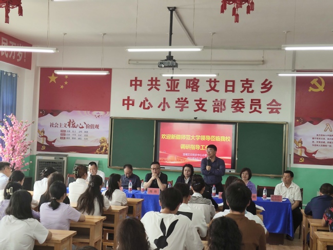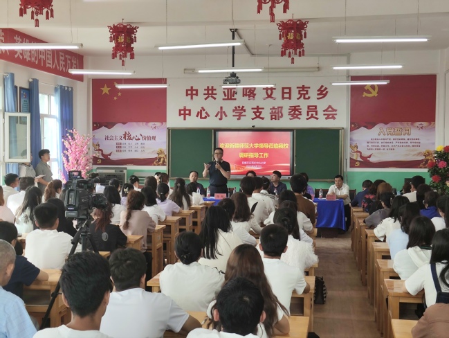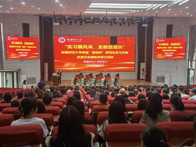 为深入推动学习贯彻习近平新时代中国特色社会主义思想主题教育走深走实,进一步深化校地合作,服务地方基础教育发展,提升我校实习支教质量,6月3至7日,我校联合和田市、皮山县、莎车县教育局分别在和田市德润园区、皮山县固玛镇寄宿制中学、莎车县亚喀艾日克乡中心小学举办了“支教展风采,教研促成长”——新疆师范大学首届“星创杯”师范生实习支教优质示范课教学研讨活动。校党委常委、副校长帕力旦·吐尔逊,校党委常委、副校长陈彤出席活动,我校教务处负责人、各地教育局相关领导、我校专家代表、和田地区、莎车县带队教师、受援学校相关领导及教师参加了系列活动。来自中国语言文学学院、物理与电子工程学院等9个学院的500多名实习生代表分别抵达各地现场观摩学习。