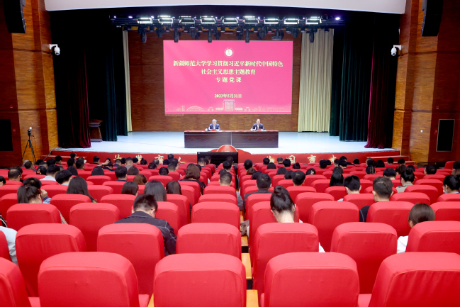 为深入开展学习贯彻习近平新时代中国特色社会主义思想主题教育,全面贯彻党的二十大精神,落实《新疆师范大学学习贯彻习近平新时代中国特色社会主义思想主题教育理论学习工作方案》,5月31日下午,校党委书记葛国在温泉校区昆仑讲堂开讲学习贯彻习近平新时代中国特色社会主义思想主题教育专题党课。