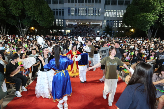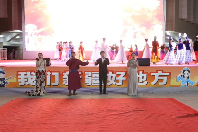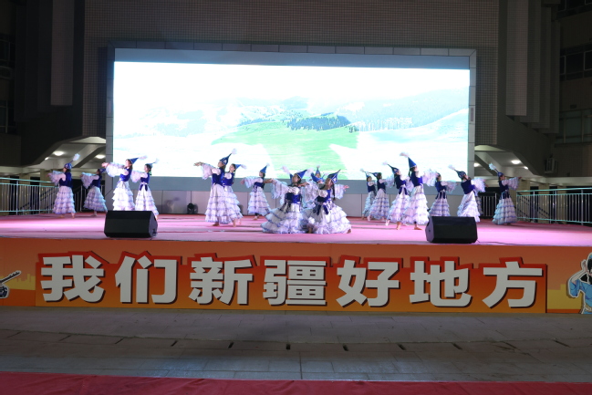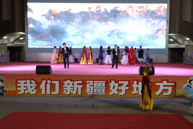 歌寄情长,舞显疆韵。歌曲《在那遥远的地方》《故乡》《可可托海的牧羊人》《草原之夜》《2002年的第一场雪》《怀念战友》深情的演唱,诉说着毕业生对母校的眷恋与不舍;《掀起你的盖头来》《巴郎仔》则展现了我校广大青年学子的青春与活力;舞蹈串烧《青春舞曲》、维吾尔族舞蹈《葡萄架下的篝火》、哈萨克族舞蹈《黑走马》、蒙古族舞蹈《额尔古纳河》、塔吉克族舞蹈《帕米尔之情》则充分彰显了“中华民族一家亲,同心共筑中国梦”的浓厚氛围。最后在全场师生共唱《我们新疆好地方》的歌声中活动落下帷幕,充分体现出各民族像石榴籽一样紧紧抱在一起的美好图景。