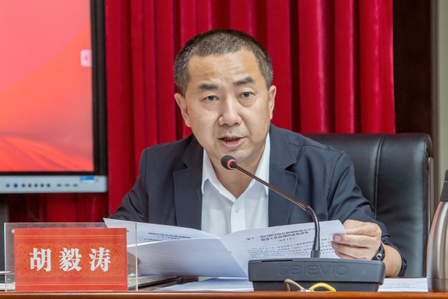会上,胡毅涛通报了自治区第十一巡回指导组在我校开展指导工作反馈的意见清单,传达了6月2日自治区第十一巡回指导组第二次视频会议精神。
