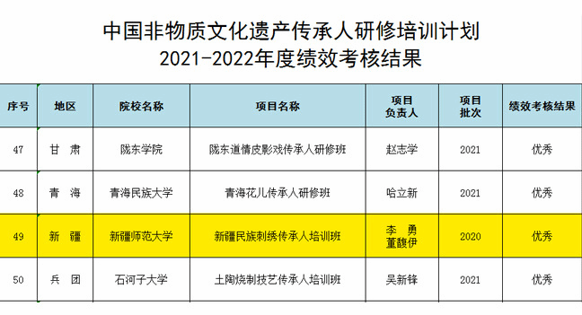 5月9日,文化和旅游部公布中国非物质文化遗产传承人研修培训计划2021—2022年度绩效考核结果,我校美术学院获批优秀。