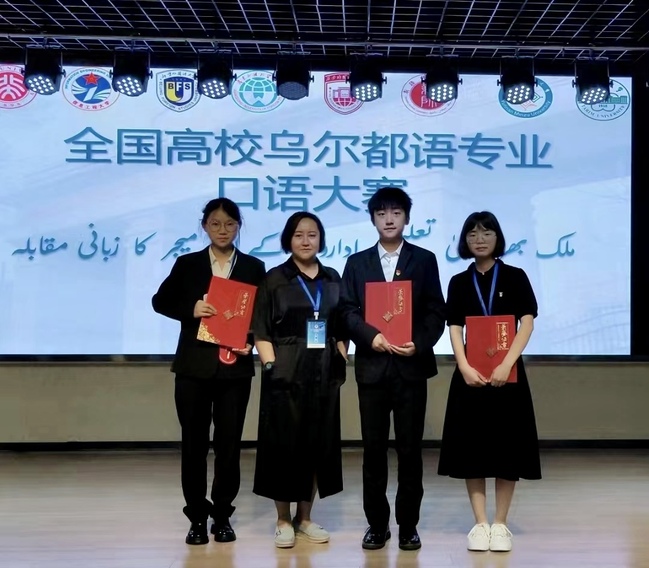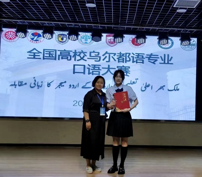 乌尔都语专业20-6班王宇翔、李玉珍,21-6班杨荣莎获得优秀奖