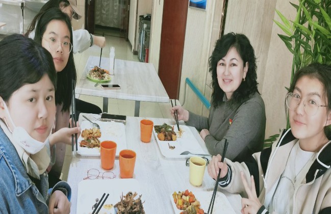 后勤服务中心教职工麦尔孜亚·玉苏普江与学生共进午餐
