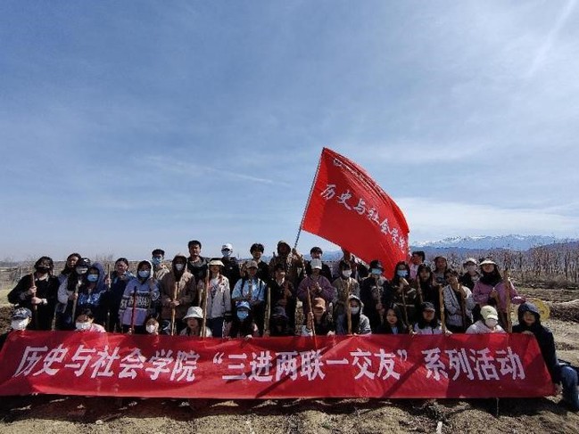 4月14日,历史与社会学院组织“三进两联一交友”师生前往春晖农场进行种植前的翻土犁地,共计80余名师生分两批参与了此次活动。在劳动过程中,师生们用实际行动展现了“各民族要像石榴籽一样紧紧抱在一起”。