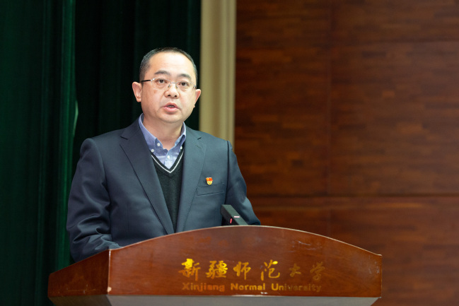 校党委委员、心理学院党委副书记、院长买合甫来提·坎吉发言