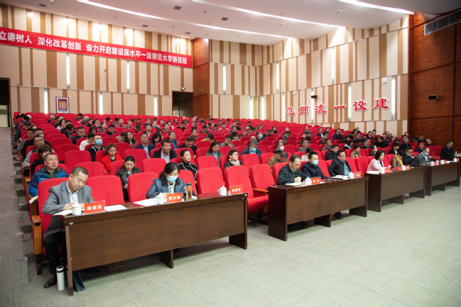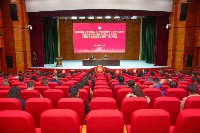 为深入学习贯彻习近平总书记在学习贯彻习近平新时代中国特色社会主义思想主题教育工作会议上的重要讲话精神,贯彻落实《新疆师范大学学习贯彻习近平新时代中国特色社会主义思想主题教育学习方案》,根据自治区党委有关要求和学校党委工作部署,4月25日下午,我校在温泉校区昆仑讲堂举行处级以上(含处级)领导干部学习贯彻习近平新时代中国特色社会主义思想主题教育读书班集中辅导及研讨交流活动。在家校领导、全体处级干部、第四期专题研修班学员参加。会议由校党委副书记刘俊主持。