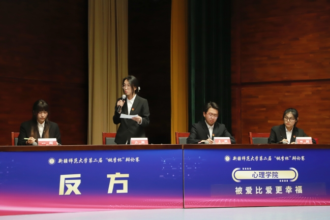 本届赛事自3月开赛以来,18个学院经过附加赛、淘汰赛的层层选拔和激烈争夺,最终马克思主义学院、心理学院进入决赛。决赛中,双方围绕“爱比被爱更幸福还是被爱比爱更幸福”这一辩题展开激烈交锋,通过生动事例、具体数据等,结合学科特色和专业知识,充分辨明了面对利己主义与利他主义、理想主义与现实主义的争锋中,青年学子应具有朝气蓬勃、拼搏向上的价值取向和爱党爱国爱疆的正确理想和坚定信念,将辩题核心升华为广大青年学子对祖国对民族的大爱情怀和为实现中华民族伟大复兴而不懈奋斗的决心,赢得现场观众阵阵掌声和喝彩。最终,经现场评委评议,马克思主义学院获得本届辩论赛冠军。