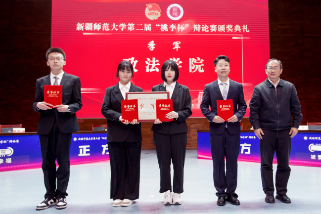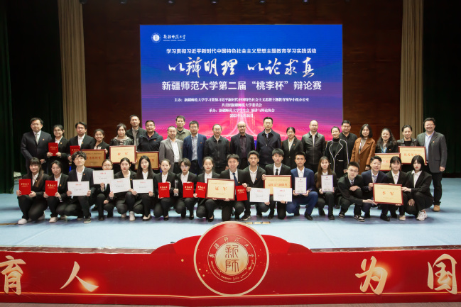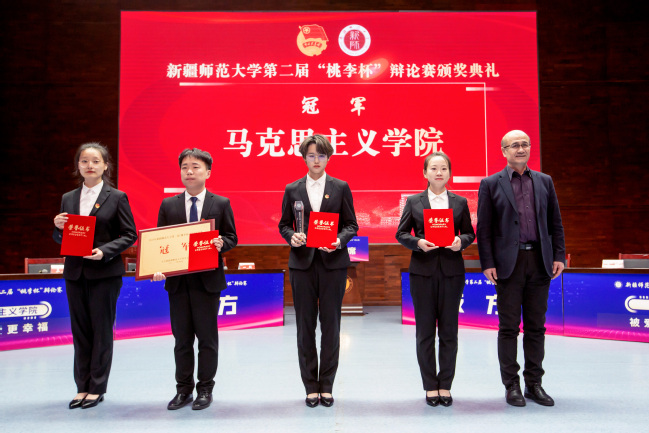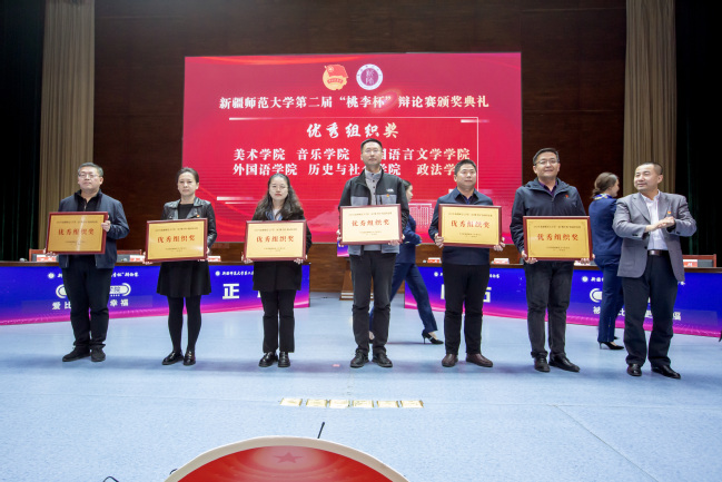 为全面贯彻落实《新疆师范大学学习贯彻习近平新时代中国特色社会主义思想主题教育学习方案》,引导青年立大志、明大德、成大才、担大任,4月26日下午,我校在温泉校区昆仑讲堂举办学习贯彻习近平新时代中国特色社会主义思想主题教育学习实践活动——第二届“桃李杯”辩论赛决赛暨颁奖典礼。校党委副书记、校长吾满江·艾力,党委副书记、副校长于祥成,党委副书记刘俊,党委常委、纪委书记蒋方珍,党委常委、组织部部长胡毅涛,党委常委、统战部部长关明出席活动并为获奖团队及个人颁奖,各学院党委书记、副书记以及师生代表共500余人参加活动。