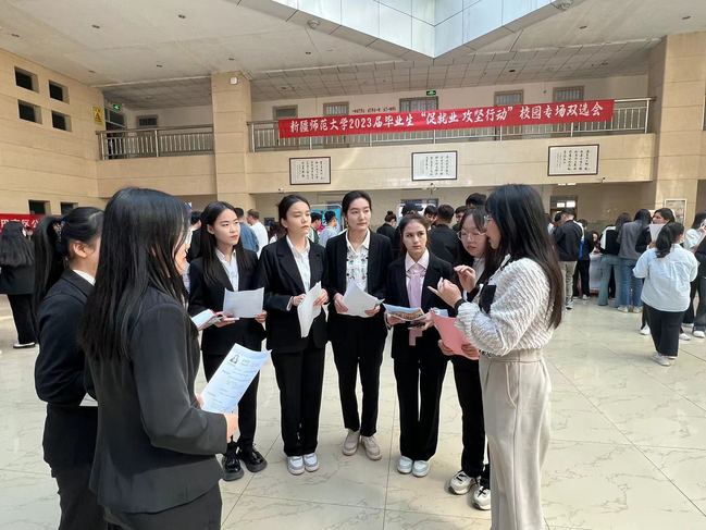 招聘服务是就业工作的重要内容,是促进用人单位和毕业生有效对接的内在需要。我校根据毕业生自身条件、群体特点和个性化需求,分别联合青年政治学院、乌鲁木齐市人力资源和社会保障局、水磨沟区人力资源和社会保障局、水磨沟区教育局、榆树沟街道办事处、榆树沟街道学府社区、乌鲁木齐快聘网共同举办了2场双选会。双选会共有63家用人单位参加,其中参加青年政治学院大专生专场双选会的用人单位共19家,提供了近千个就业岗位;参加温泉校区师范类专场双选会的用人单位共44家,提供就业岗位300余个,旨在帮助2023届本专科毕业生及时把握春招机会,提升人岗匹配效率,尽早尽快落实就业岗位。双选会采取线上、线下同步举行的方式进行,参与线上招聘的人数约11000人(次)。