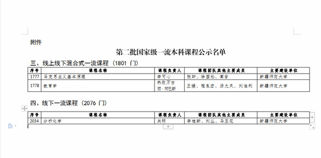 4月11日,教育部高等教育司公布了第二批国家级一流本科课程认定名单,我校马克思主义学院李可心副教授的《马克思主义基本原理》、教育科学学院热孜万古丽·阿巴斯副教授的《教育学》被认定为国家级线上线下混合式一流课程,化学化工学院关明教授的《分析化学》被认定为国家线下一流课程,这是我校近年来在课程建设方面取得的又一重大突破。