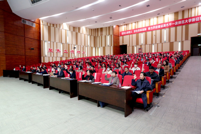 4月7日下午,新疆师范大学第九届第二次教职工代表大会暨工会会员代表大会预备会议在温泉校区昆仑讲堂举行。出席本次会议的教(工)代表共133名,校党委副书记王志勇主持会议,全体在家校领导参加会议。