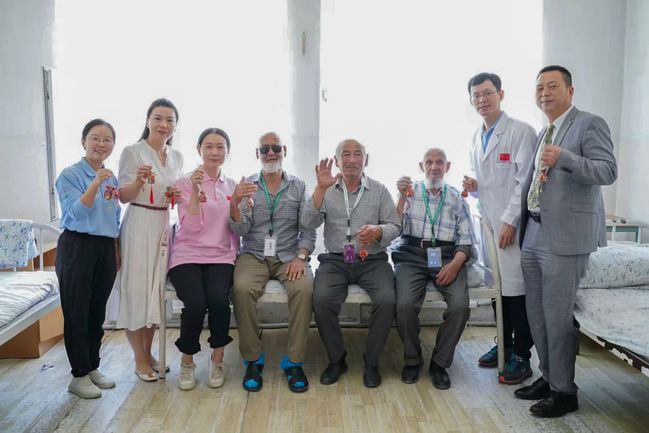 我校合作共建的塔吉克斯坦民族大学孔子学院师生与白内障患者共同制作端午香囊