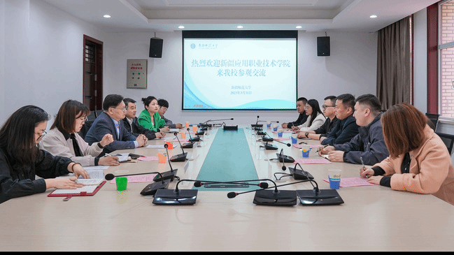 3月31日下午,新疆应用职业技术学院党委委员、宣传部部长卡吾孜亚提·斯德克一行6人来我校参观交流。校党委常委、宣传部部长高靖出席座谈会,学生工作部(处)领导、相关科室科长和辅导员代表陪同参观。