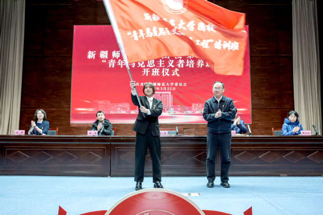 为深入学习贯彻习近平新时代中国特色社会主义思想和习近平总书记关于青年工作的重要论述重要指示精神,深化实施“青年马克思主义者培养工程”,努力培养一支政治坚定、德才兼备、勇担重任、全面发展的青年队伍,锻造成为中国特色社会主义事业的建设者和接班人,3月22日下午,我校团校第十五期“青年马克思主义者培养班”开班仪式在温泉校区昆仑讲堂举行。校党委副书记刘俊出席开班仪式并为“青年马克思主义者培养班”授旗。党委宣传部副部长阿不都米吉提·吾买尔、学生工作部(处)处长张进、就业指导中心主任熊文红,各学院团委书记和第十五期“青年马克思主义者培养班”全体学员参加了开班仪式。仪式由校团委书记陆娇主持。