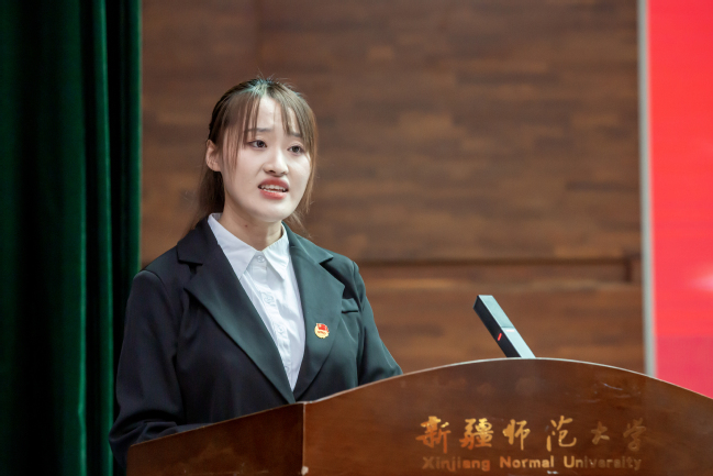随后,张进宣读第十四期“青年马克思主义者培养班”优秀学员名单,出席仪式的领导为优秀学员代表颁奖。第十四期“青年马克思主义者培养班”优秀学员代表体育学院雒轩邈、第十五期“青年马克思主义者培养班”新学员代表中国语言文学学院王江君发言。