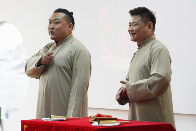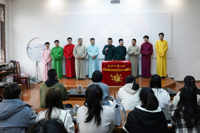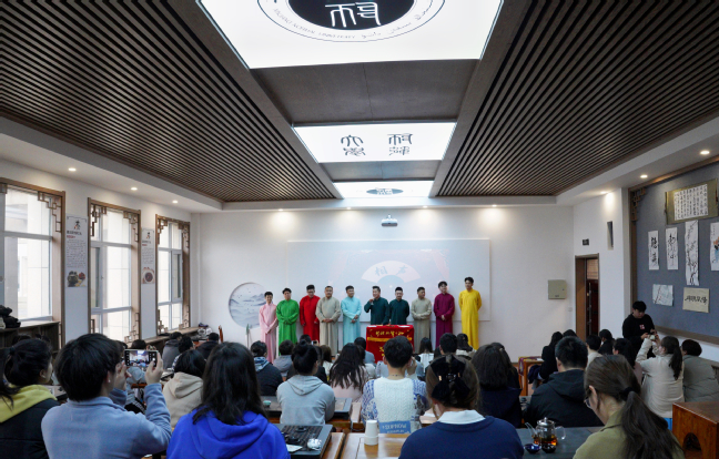 为进一步传承和弘扬中华优秀传统文化,提升我校学子的人文素养和文化底蕴,3月15日,由自治区文联主办,自治区曲协、相声巴扎协办,我校团委承办的“国潮遇见新师大——‘笑满新师’相声专场”在温泉校区4号教学楼茶艺体验室举行。来自我校的80余名相声爱好者共聚一堂,品茗看戏,共同感受相声带来的欢乐。