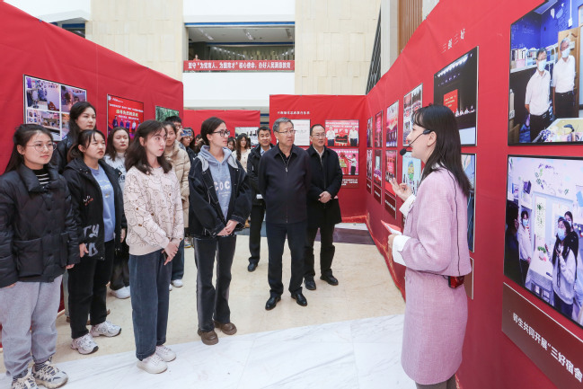 葛国宣布图片展正式开展。到场领导和师生代表共同参观了“醉美师大——光影里的奋斗之路”主题图片展。图片展分为“砥砺耕耘 吐纳英华”“砥志研思 返躬践实”“同心抗疫 共克时艰”“嘉言懿行 细雨化人”四个篇章,图文并茂地展现了五年来全校广大师生员工不平凡的奋斗历程。