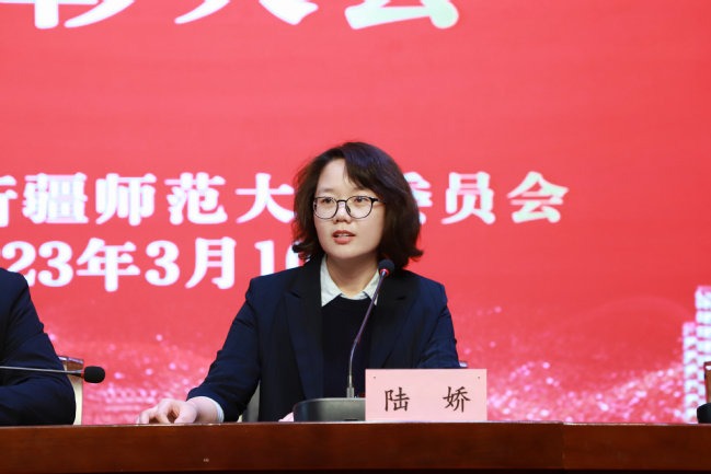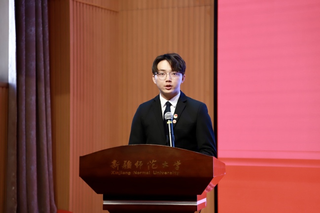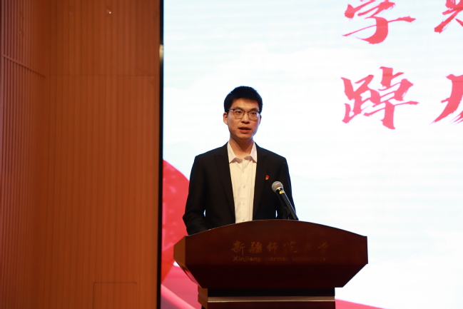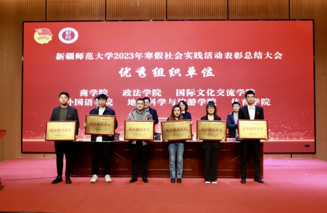 会上,陆娇作2023年寒假大学生“返家乡”社会实践及“十个一”主题活动总结。商学院团委书记赛福丁·哈德尔、体育学院团委书记董彬作为“优秀组织单位”获奖学院代表发言,分享学院组织社会实践活动的典型经验和先进做法。数学科学学院阿布都热依木·托合提代表2023年“青年突击队”进行分享,历史与社会学院罗光耀代表2023年寒假“返家乡”社会实践志愿活动学生发言,政法学院张焱代表2023年寒假“红领巾小课堂”社会实践活动学生发言。