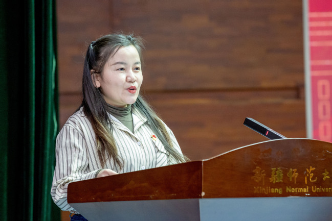 教育科学学院本科生第三党支部书记木丽得尔·毛力提发言