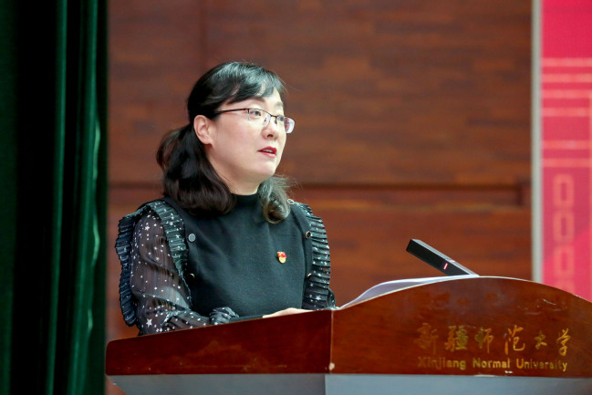 体育学院党委书记杨晓蓉、地理科学与旅游学院教师第二党支部书记赵直、教育科学学院本科生第三党支部书记木丽得尔·毛力提作为基层党务工作者代表分别就加强党建与业务融合、创建“五个好”支部规范化标准化建设等主题作了交流发言。