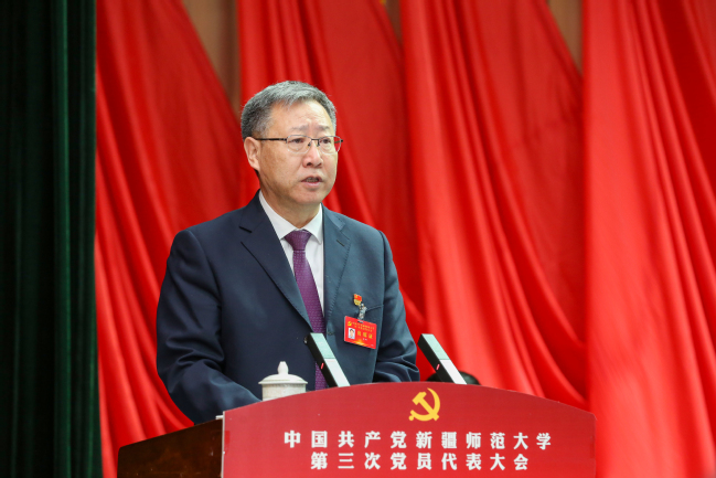 葛国同志代表中国共产党新疆师范大学第二届委员会作了题为《坚持立德树人 深化改革创新 奋力开启建设高水平一流师范大学新征程》的报告