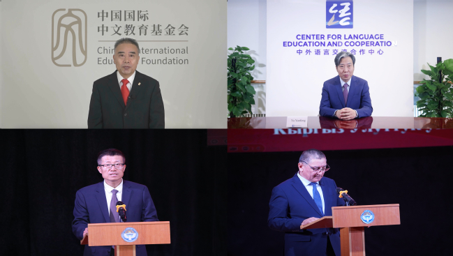 活动伊始,中国国际中文教育基金会副理事长、秘书长赵灵山,教育部中外语言交流合作中心主任郁云峰及我校党委副书记、校长吾满江·艾力分别发表视频致辞,高度肯定吉尔吉斯国立民族大学孔子学院十五年来为促进中吉文化交流与国际中文教育推广所做出的杰出贡献。