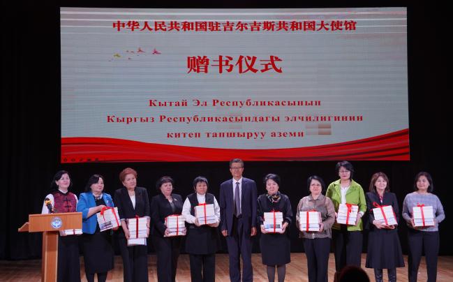 中华人民共和国驻吉尔吉斯共和国大使馆公参李保杰向吉民大孔院各教学点捐赠中文图书