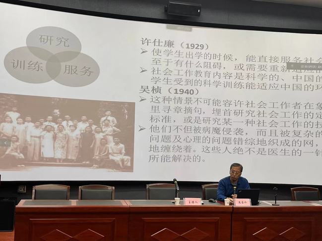 座谈结束后,焦若水教授为历史与社会学院广大师生作了题为“生活世界:中国社会工作发展的实践本源与基础理论”的学术报告,他通过生动的社会工作实务案例和丰富的实践经验,展示了基于中国本土实践的社会工作理论创新路径。焦若水教授强调,社会工作具有高度实践导向的发展内涵,需要立足社会工作实务发展构建理论,从生活世界的范式出发,能有效避免社会工作专业化与本土化论争的视角盲区,促动社会工作研究界更多从行动研究的角度关注实务工作实践,并着力将其上升为具有一定普遍解释性的理论,指引社会工作者开展基于本土实践的实务,顺应我国社会工作实务发展结构性提升的需求,双向促动社会工作的发展。