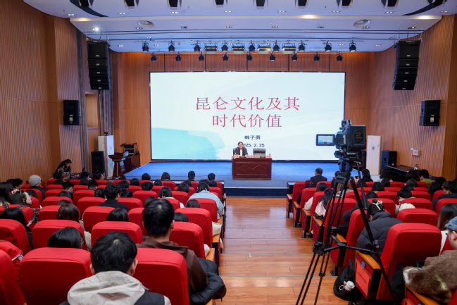 韩子勇研究员以《昆仑文化及其时代价值》为主题进行讲座,从昆仑文化的起源、发展、内涵、特征以及时代的价值与意义等多个角度对昆仑文化进行了深入解读,阐述了昆仑文化的源远流长及博大精深,并通过史料进一步说明了昆仑文化中蕴含的中华民族对天地、自然、生命的哲学思考和信仰信念。从古老的昆仑神话到现代的文化认同,昆仑文化始终贯穿着中华民族的精神追求和文化基因,见证了中华民族的历史变迁,承载了中华民族的记忆与梦想,讲座为在场师生描绘出一幅昆仑文化的壮丽画卷。