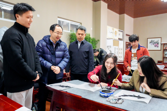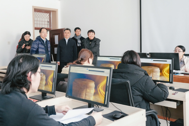 调研过程中,于运全一行还深入我校外国语学院口笔译实验室、涉疆研究院、铸牢中华民族共同体意识教育实践基地(美育浸润实践基地)进行了走访调研。