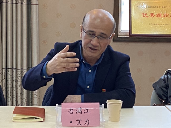 座谈会上,吾满江·艾力一行首先听取了学院工作情况汇报,并围绕人才培养、科学研究、学科建设、师资队伍建设和社会服务等方面与干部教师进行了深入交流。