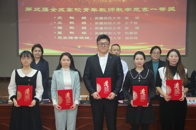 经过两天的激烈比赛,第三届全区高校青年教师教学竞赛决赛落下帷幕。自治区人民政府督学孙红新,自治区总工会党组成员、教育工会主席朱莉莉,自治区教育工会副主席夏汗哈孜·木沙依,新疆师范大学党委常委、副校长帕力旦·吐尔逊,新疆师范大学党委常委、副校长季荣,自治区教育厅教师工作处处长李亮出席闭幕式。全体获奖教师及参赛学校代表、我校教务处全体工作人员共130多人在线上线下同时参加了闭幕式。闭幕式为参加比赛的15所院校及其教师颁发了奖牌和证书。