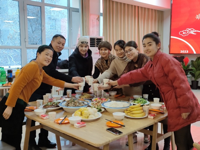 校党委常委、副校长季荣21日看望留校研究生并与大家共吃年夜饭