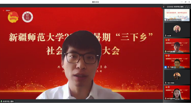 会上,陆娇介绍了学校2022年暑期“三下乡”社会实践开展情况。卢修配宣读了学校2022年暑期“三下乡”社会实践表彰决定。经验交流分享环节,“同一片蓝天下”莎车县亚喀艾日克乡中心小学教育实践团、马克思主义学院“红色教育实践课堂”实践团队、商学院新疆奇台县小麦产业全产业链建设情况调查团、美术学院“追寻红色足迹,承先烈革命精神”团队代表依次进行分享汇报。体育学院董彬作为优秀指导教师代表发言。