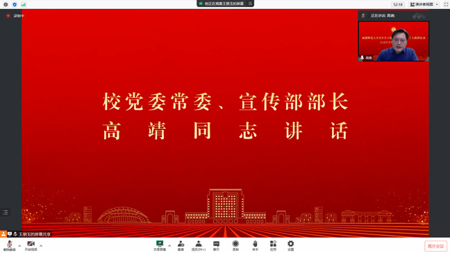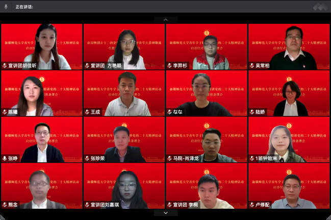 11月13日晚,我校青年学子联学联讲党的二十大精神活动启动仪式暨集体备课会以线上会议方式举行。校党委常委、宣传部部长高靖出席仪式并讲话。校团委书记陆娇、马克思主义学院部分领导、宣讲团指导教师和党的二十大精神青年宣讲团成员参加会议。会议由马克思主义学院党委书记张峥主持。
